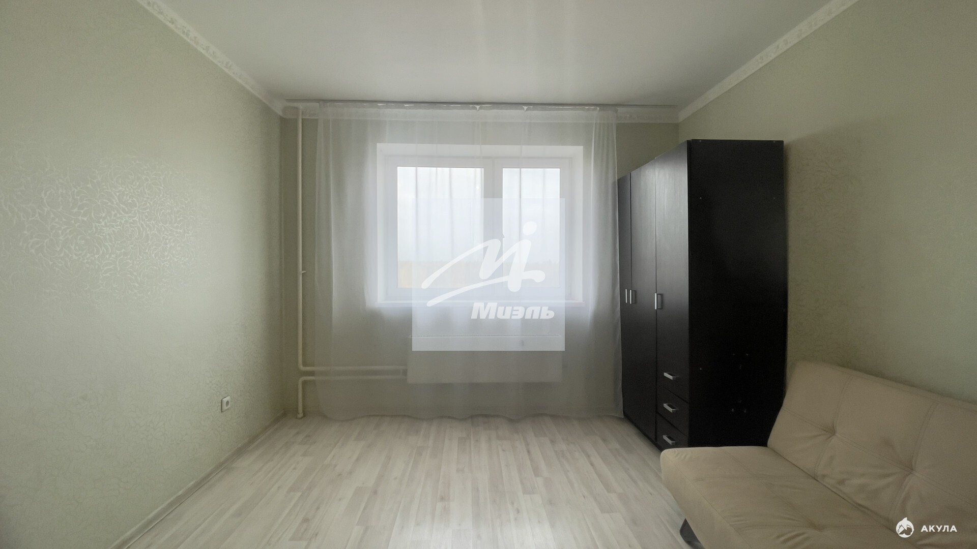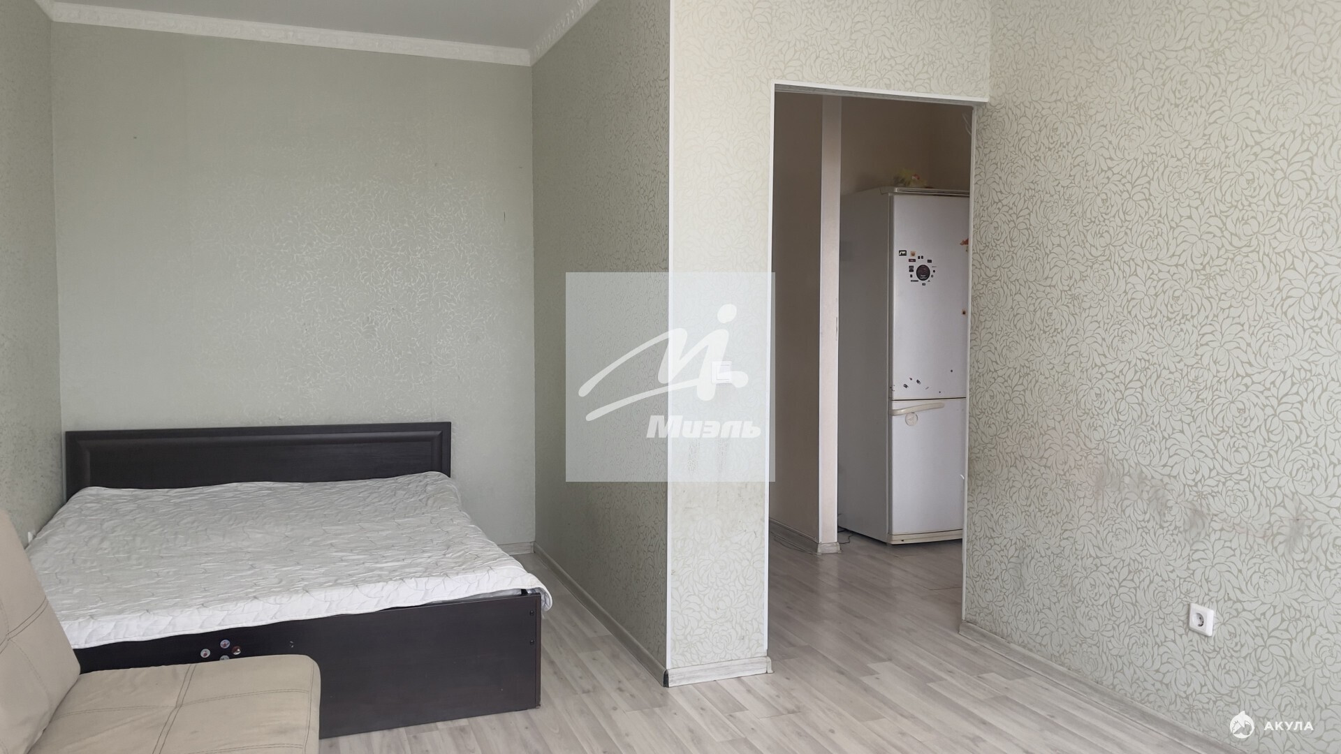В квартире выполнен ремонт, на полу светлый ламинат, стены под обои. Правильной формы кухня, с выходом на балкон, оборудована встроенной мебелью и необходимой техникой. Совмещенный санузел выложен плиткой от пола до потолка.