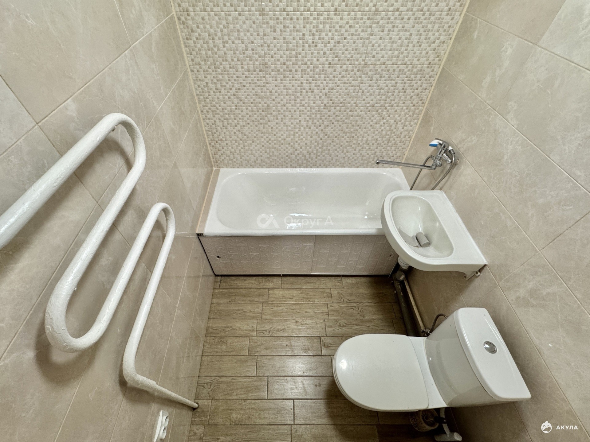 * Совместный санузел с новой сантехникой.