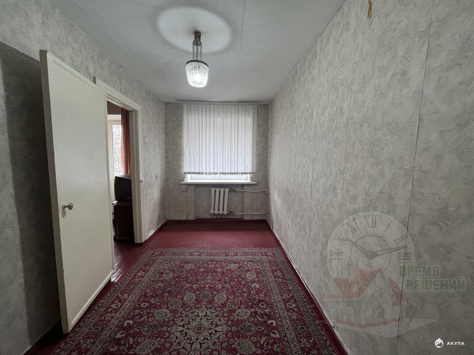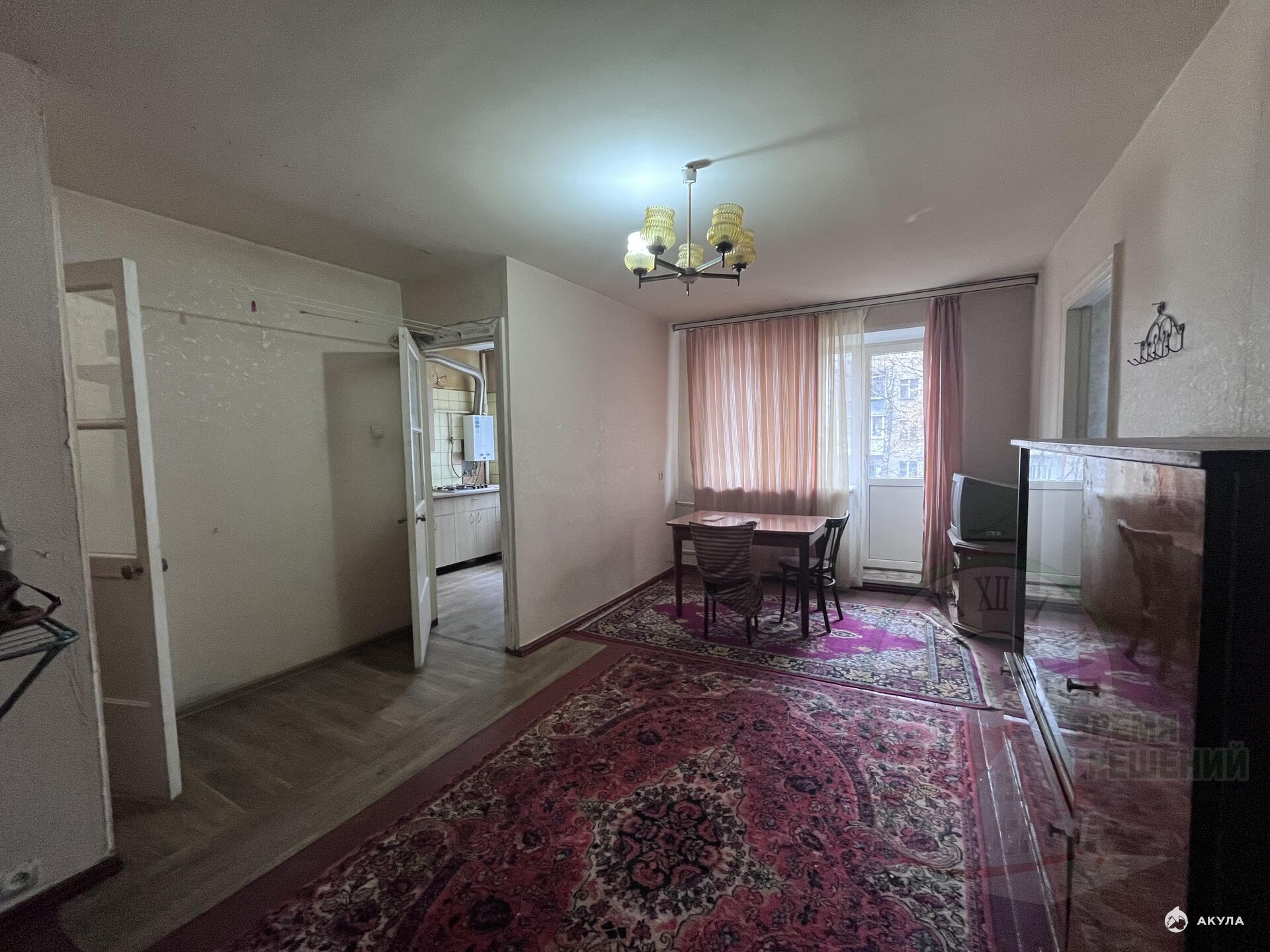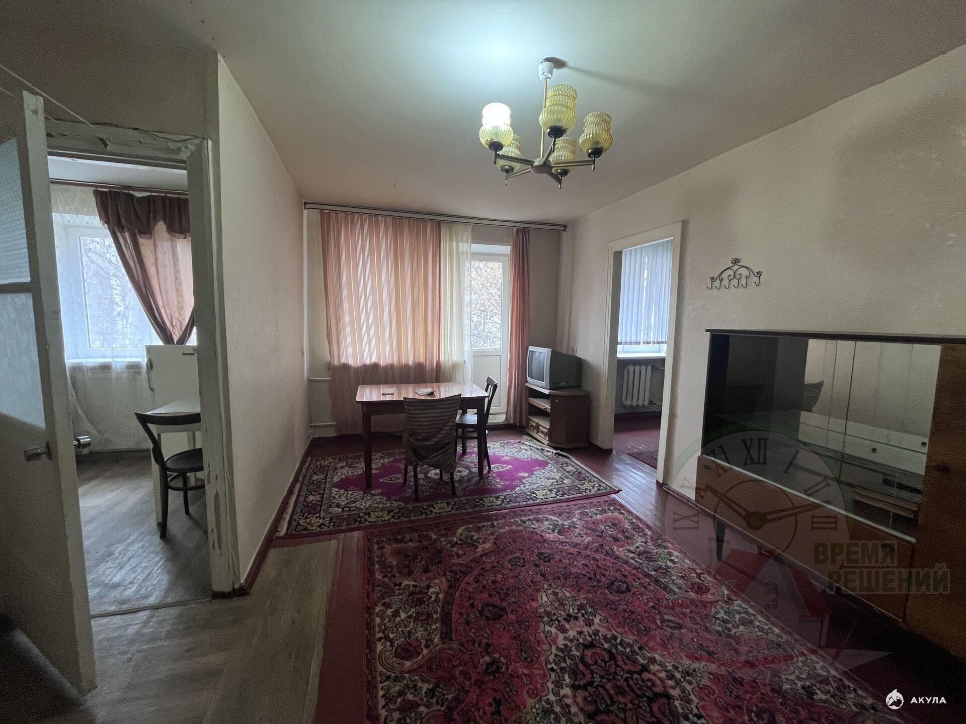 2 смежные комнаты 17 и 11 кв.м., вместительная кладовая, совмещенный санузел, кухня 6 кв.м. Есть незастекленный балкон. Окна заменены на пластиковые.